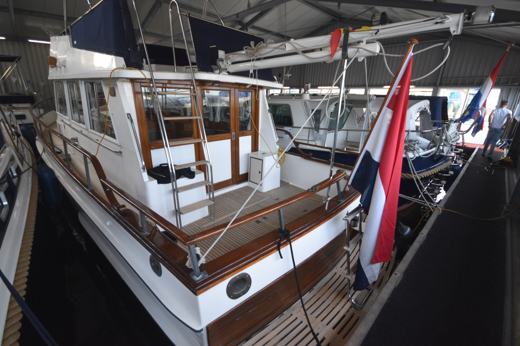 Mooie en goed onderhouden Grand Banks 36. Speciale lage riviera uitvoering voor vaart door Frankrijk. Boeg en hekschroef. Autopilot, Raymarine Element 12 Plotter, etc. Super compleet. Binnenfoto's volgen.